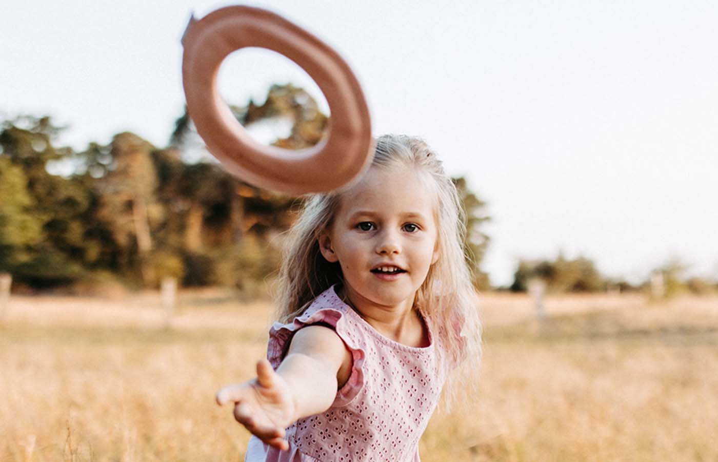 Ein bewegungsförderndes Familienspiel für draußen sind die weichen Wurfringe aus Leder von Pantolinos – einer frauengeführten Manufaktur in Niedersachsen. Mit ein bisschen Kraft fliegen die Wurfringe nicht nur in ungeahnte Höhen, sondern werden am Ende des Tages auch ganz einfach wieder zu einem taschenkompatiblen Knäuel gestaucht.