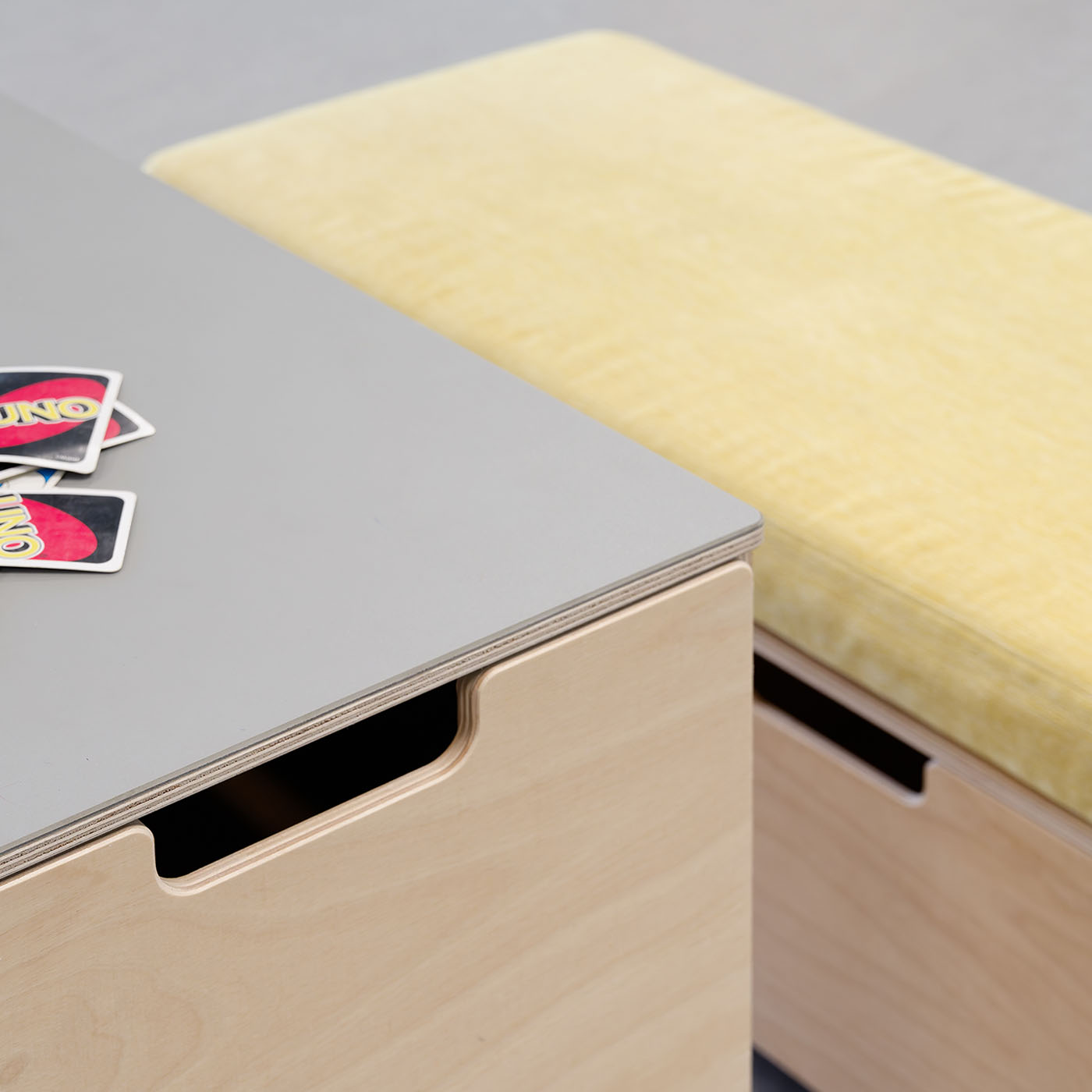 | Farbe | Birke natur, Deckel mit Linoleum beschichtet oder gepolstert – beides in großer Farbvielfalt erhältlich |